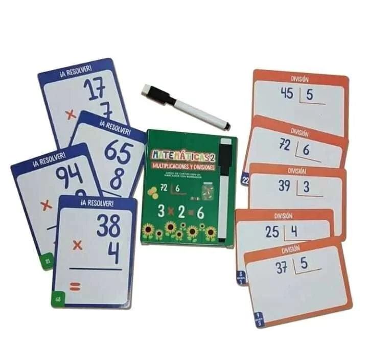➗ Las #cartas contienen sumas y restas en el nivel 1 y multiplicaciones y divisiones en el nivel 2.